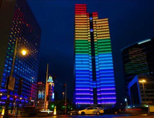 它立于罗吉尔广场中央,就像一个灯塔一般照耀整个城镇。它有一个梯形平面图,占地4400平方米。建筑的一大亮点是设计师巧妙运用的发光二极管,它们使整个建筑看起来就像一个不停闪动的彩虹。每月的平均气温将会通过建筑表面颜色的变化显示出来。