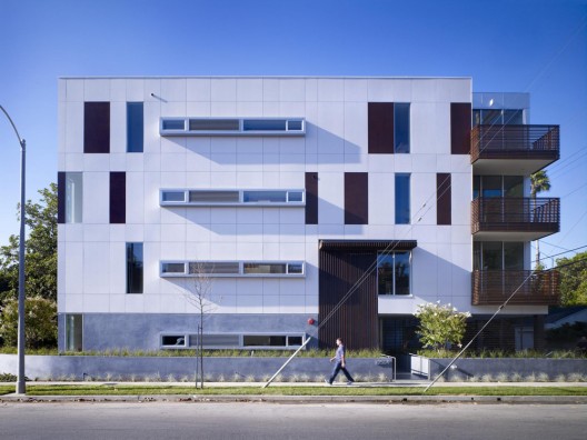 这是建筑师与开发商之间的一次成功合作,两者都是建筑疯狂的爱好者,建筑师本人是一个虔诚的现代主义者,开发商则是一个迷恋建筑设计和建造质量的人。两者的结合形成了南加州这个不可多得的住宅。建筑结构简单,大量应用横竖矩形结构,干净整洁。