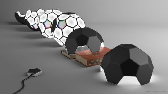 这是一款由设计师Simon Enever精心设计的一款照明灯,足球立体形提高了整体照明的体验。足球的顶部有一个感应充电装置,灯泡发光颜色多姿多彩,任群选择。足球的外形提供了六个不同的角度照明,让你在不同的角度享受不一样的视觉感受,无论是放在床头,还是工作台,这样的无线装置会让爱不释手。