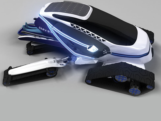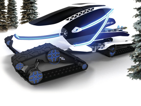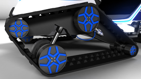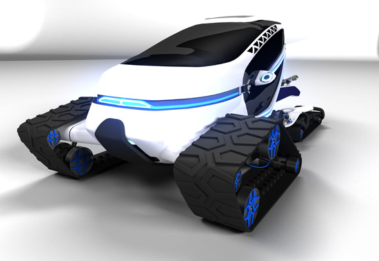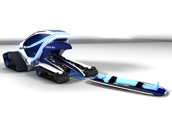 这是由设计师matthew hardman设计的一款救援车。车辆使用对地橡胶履带状空气悬架系统,使用柴油发动机和混合动力功能,独特的后方平台上装载病人,一旦上了担架,病人可以通过绞车系统被拉上车,进入后端遮阳篷,便可应对多变的天气状况。