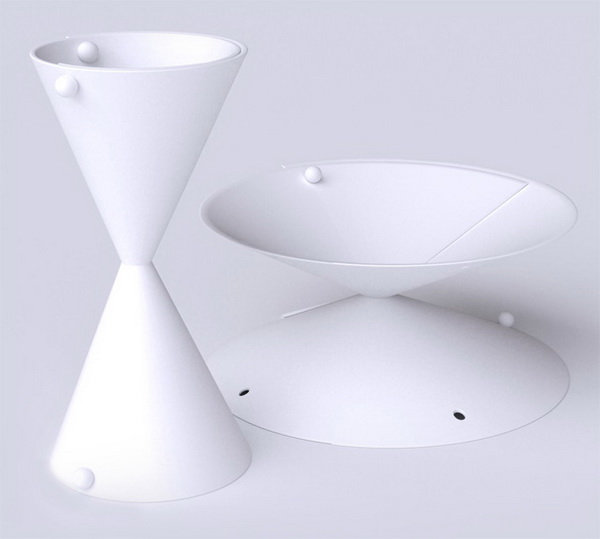 一个简单、高效、方便,而且可重复使用的软塑料餐具设计。它可以是一个盘子、一个碗,甚至是一个杯子,我们需要做的就是简单的将它卷起来,按自己需要的形状扣住即可,使用完后直接打开,清洗也非常的方便。