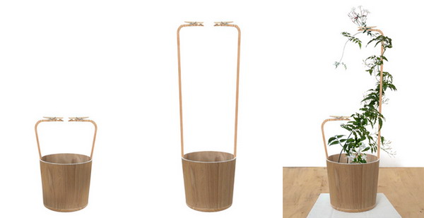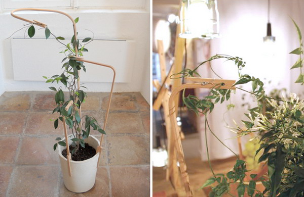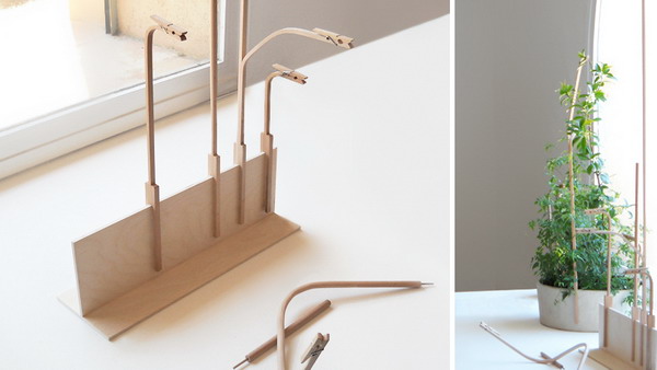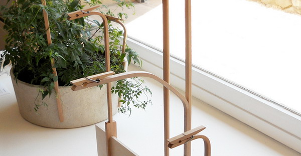 法国设计师grégory marion最近设计了“植物晒衣夹”,这个精巧的设计用来支撑、夹住那些生长的过于茂盛的植物。在形式和功能上,这个设计与传统晒衣夹十分相似。设计师将夹子固定在花盆上,并根据生长中的植物形态将它们弯曲、扭转。这些晒衣夹都是手工木制品,有多种形态和尺寸,使用者还可以用来悬挂其它物品。