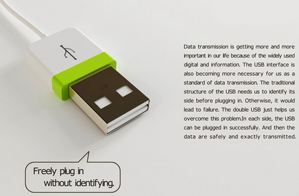 现在,设计师Ma Yi Xuan带来的双向USB插头(Double U),将彻底告别这个小麻烦:创意非常简单,但是不好用文字描述,直接看题图最简单了,一目了然的直观。非常赞的一个设计,也许唯一的阻力只会来自习惯的约定俗成,毕竟全球这无数的USB设备都认同了原有的防插错设计,要想改过来可不是一朝一夕的事情。