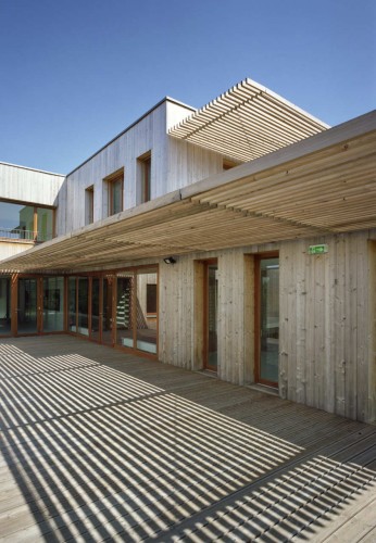 这个养老院位于法国Riedisheim高地上,周围是一片居住区。四周的地理条件限制和相关的规范限制造就了这个项目的困难局面,设计巧妙地与地形融合,形成绵延的长长的建筑躯体,与斜坡地势相辅相成。建筑结构次第排列,随着斜坡的趋势由东向西递增。屋顶高高的,以阻挡周围环境的影响。