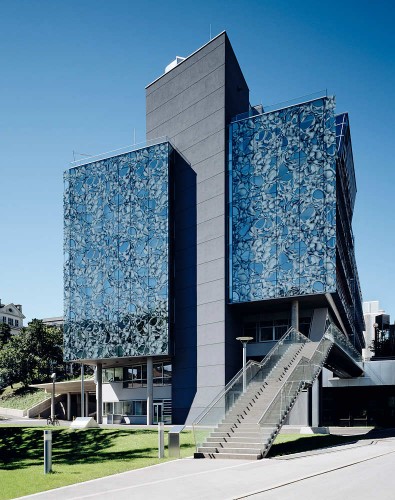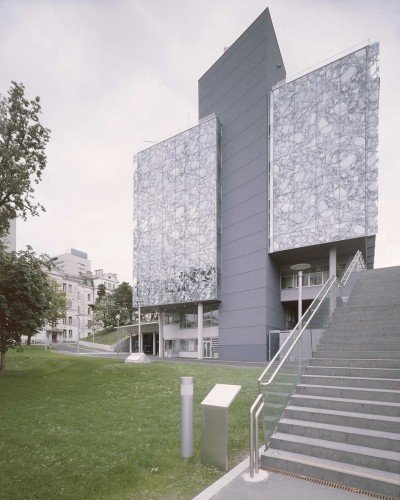 这是位于奥地利维也纳的分子医学研究中心,设计呈现出朴素简单的形式,给人以严谨的感觉。建筑有一侧立面呈现出独特的纹路,是对建筑功能的一种反映,影射分子元素。建筑包含露台和向内表皮,顶部是研讨会议空间和自由交流空间。