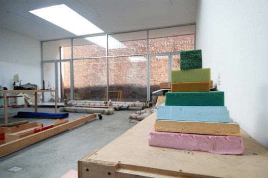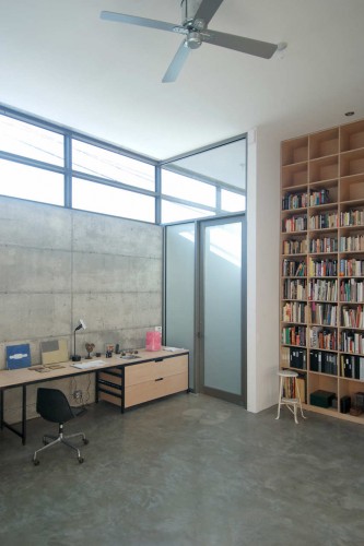 这是纽约东布鲁克林一个工业复兴区,事务所将一个工厂重新加工变为一个艺术家工作室。原来破旧的表皮和不稳定的地基被灌浇混凝土表皮代替,这一新表皮反映了附近社区的统一状态,即入口都是一个很小的钢铁门上的切口。当人们在工作室中穿行,会经过一系列的落地玻璃开口,它们使工作室既保留私密又有透明性。不管是从工作室还是从起居室一侧,人们都能看到建筑的整体高度,这与原有建筑的工厂性质一致。没有室内的墙壁是与建筑边长相接触的,外面的包裹被重新开发,以提高环境效率和热辐射地板技术。