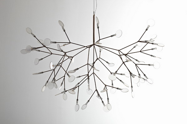 受到独活属植物的影响,荷兰设计师bertjan pot为家具品牌moooi设计的全新LED灯具设置了若干 “白色叶子/镜片”,像一个分叉的树枝,其形态兼具技术性和自然美感。这款灯具名为“heracleum” (独活属),设计师在灯具表面覆盖了一层导电层,这个纤细脆弱的灯具不能使用常规电线。