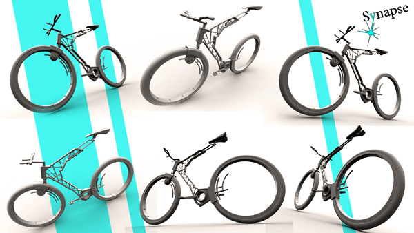 我看过一堆无轮轂设计的概念车款,不过这台 Synapse 自行车因为拥有能协助车手更轻松骑乘的整合性电动引擎,就又比它们更先进了。这样的设计让整台车都,让车手能自行控制(在此所缺乏的)构造元件,在外型上简单、优雅、带点侵略性、却也功能齐全,彷彿骑着没有支架的单车。