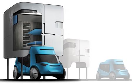 在这个居住空间告急的时代,一位美国设计师则为我们构思了这样一款概念房车,能够很好的解决住房与交通问题。它形似船坞,由一座面积为100平方米架空房屋和一辆室内空间达32平方米的电动汽车构成。房屋顶部为太阳能板,能够同时为室内设施与汽车供电。室内家具和汽车内饰都很简洁紧凑,方便腾出很大的空间。这款“房车”省电省空间,为未来生活提供了一种新选择。