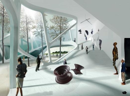 这是为城市建造的一个“工厂”,一个可以干任何事情的空间,什么事情都行,它就是这么简简单单,人们可以在这里交流,与世界交流,同时快乐地学习。一个建筑需要和城市发生对话,作为一个有机的整体,它轻柔地坐落在场地上,一系列感性的设计迎合了发现,实验,及以新方式感受城市等各种行为。这个空间内的物理界限被淡化,它已经与由建筑平衡性而生的建筑几何形式和可渗透区域融为了一体,这加强了周围城市空间的流畅感。室内是一系列流畅的功能排布,它们旋转围绕一个中央空洞,它探讨的是建筑的透明性和美丽结构。