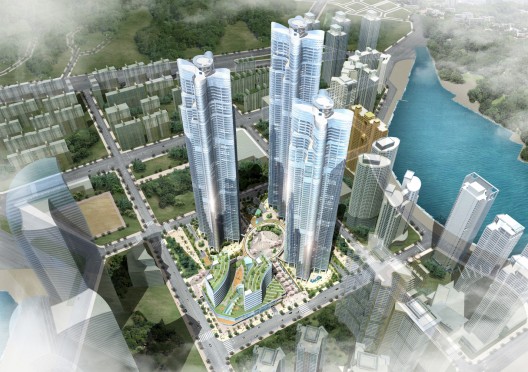 这是由DeStefano 及合伙人事务所设计的一个位于韩国釜山的高层项目,项目将最高包括八十层,涵盖住宅项目,和附近的商业开发项目。设计呈现出雕塑般的形态和曲线的平面,塔楼受到自然的美丽的启发,起伏的造型是对海洋的回应,曲线的玻璃形式为高大的塔楼增添柔和的感觉,与附近邻里的直线型结构形成对比。但同时为了不使塔楼过于突兀,设计在不同方面都有所收缩。设计打开了天际线,为塔楼的组合带来美好的形象,同时保证更多的光入内,并尽量减少对周围场地的阴影覆盖。