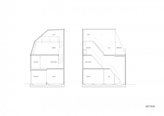 这个住宅的设计主题非常适合这么一个小巧的家庭,设计背后的想法是包含隐私,同时为住户在拥挤的城市中心区提供舒适的环境,房间最大可能地提供隐私,例如卧室和浴室,它们分别位于住宅的首层和二层。起居和厨房位于三层,书房在最上面的阁楼。这些房间的布置都是为了最大限度地利用太阳光线,三层有很高的天花板,它们使南侧窗户能透入很多的自然光线。