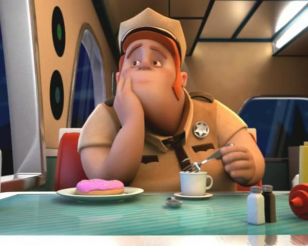 supinfocom(法国高等信息传播学院)出品动画短片《咖啡馆事件》(Café Serré),讲述一个迷迷糊糊的迟钝警察(他长得好像《Wall-E》里面的船长啊)无心插柳却制住倒霉小贼的故事,短小但颇有趣味。