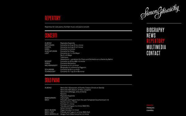 kissmiklos是匈牙利的一位设计师和视觉艺术家。有杰出的审美素养和较强的艺术品位。下面是为Simon Ghraichy,一位钢琴家,做的CD设计。包括logo,包装以及素雅的网页设计。