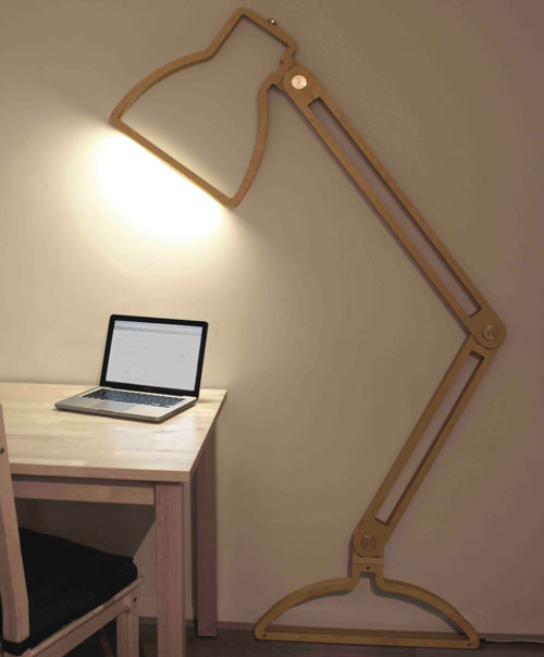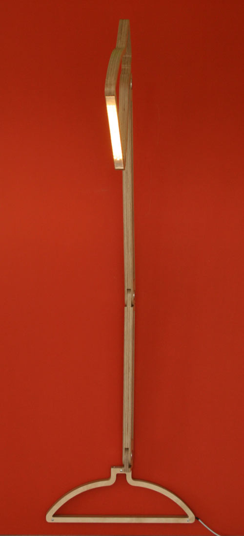 Giles Godwin-Brown设计了这盏二维灯具Nepa Lamp,高6英尺,采用LED照明,用桦木复合板、不锈钢及铝制的细部零件做成。设计师将它描述成“一个二维的台灯剪影,巧妙地转变为一个具有三维立体效果的台灯”。
