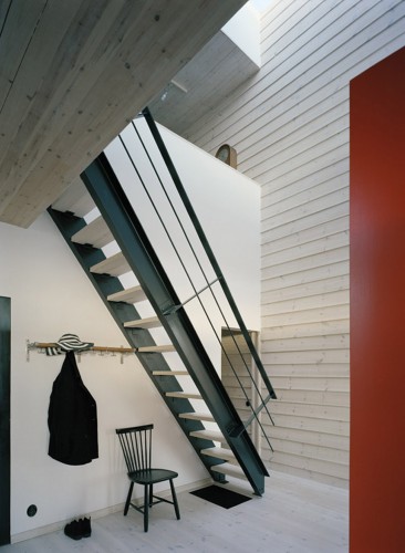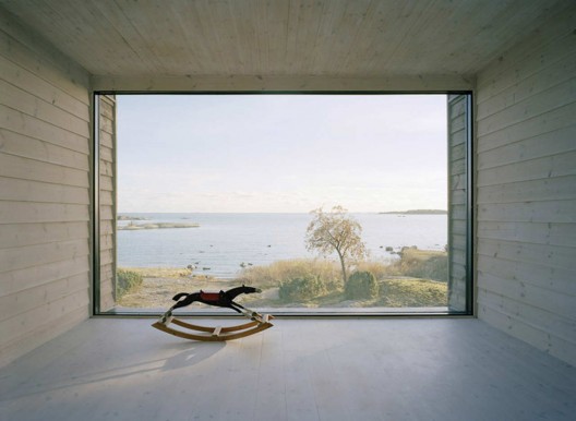 这个别墅建在海洋之边,享受美丽的海景,夹在岩石与开阔的海洋之间。自然元素包括天空,海洋的变化,太阳光在海面上的反射,强风吹过波罗的海。住宅的体量创造出与自然环境的强烈对比。住宅像一艘船停靠在岸边,形成一个清晰的实用的结构。建筑位于一个较为低矮的场地上,与海岸更近,这也为设计带来极大的挑战,因为海浪随时可能来袭,鉴于此住宅由一系列的柱子保护,从而使海浪可以从住宅的底下穿过。