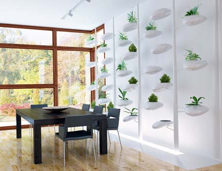 设计说明:这可以说是一件雕塑作品,是一个拥有自我灌溉系统的室内种植系统。分层种植豆荚架中内置有一个自动灌溉系统,可以定期抽取适量的水灌溉每个豆荚盆。这个无土栽培系统使用由熔岩和椰子壳作为种植介质。你可以根据需要定制不同高度、宽度的架子,并且在屏幕的底部设有LED等作为照明装置。