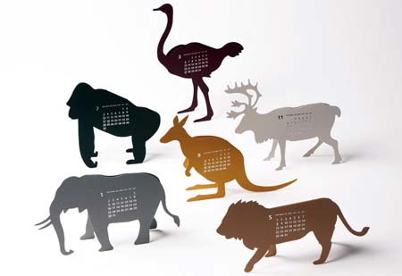 设计说明:这一早安折纸日历被预先切割成小组建,可以被组装成动物的形状,拼出每月的台历。2011年的主题则为动物园和野生动物园的各种动物。