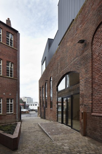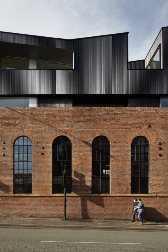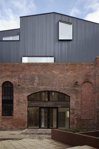 这个两层的由Project Orange建筑事务所设计的位于英国伦敦的项目在既有的仓房之上加上了独特的结构,呈现出两种类型相互堆叠的感觉。上层的附加体替换了以前的尖顶,创造出三个复式的包裹在黑色钢铁体量内部的办公室空间,而这几个体量既覆盖又嵌入,与之前的砖结构形成不同形式的互动。一个新的餐厅和酒吧占据具有高高天花板的下面的仓库空间,这里的室内享受两层高拱形窗户所带来的阳光照射。完整的项目旨在复兴既有的颓废的建筑,突出工业遗产,使之重新发挥作用,积极融入到城市的动感背景之中。