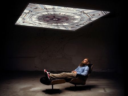 为了将人们的注意力重新引向“天花板”这一如今被忽视的角落,来自德国的设计工作室将大版式照片与灯具组合到一起,推出了一系列巨型的壁画吊灯,让人不禁回想起曾经流行一时的吊顶壁画。这种吊灯的厚度仅为44毫米,自下向上仰视时效果尤为壮观,若是能与室内装潢风格统一结合,相信一定会营造出更为理想的艺术氛围。