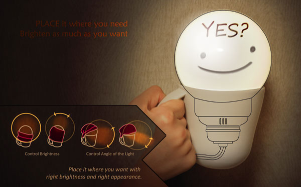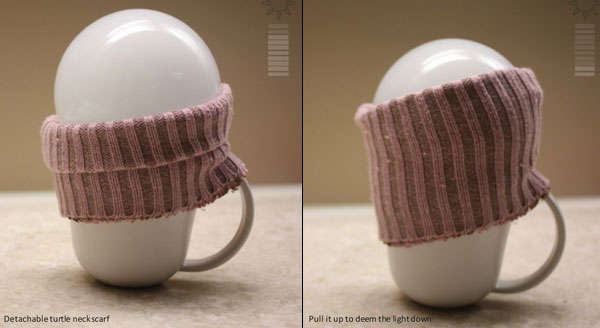 T Light是由Lucy Jung带来的设计,将LED灯泡与咖啡杯结合在一起,不仅可以在其圆滚滚的脸蛋上画些可爱表情,还可通过“脖子上”的围巾来控制它的光照范围。不管是放在办公桌上,还是床头柜上,都是个不错的点缀。