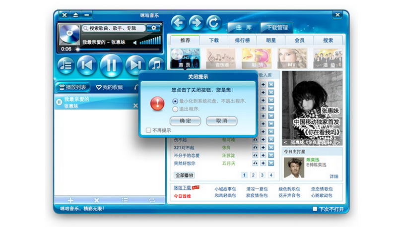 Mac系统下app主窗口关闭后,默认后台挂起,点击dock中的icon可重新打开该app的主窗口,点击dock中icon右键菜单里的退出或menu bar上的退出项可退出程序。但某某咪咕音乐for mac版本,虽然试图往Mac系统的操作习惯上靠拢,如把关闭和最小化等按钮放在了窗口的左上侧,但把Windows下点击关闭按钮,询问用户需要最小化还是退出程序的提示放到Mac下,显然与Mac的体验不相符,让用户不知所措,破坏了用户习以为常的认知和操作,使app变得不伦不类。