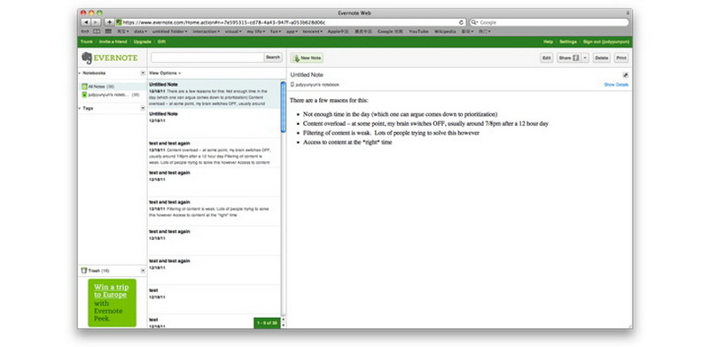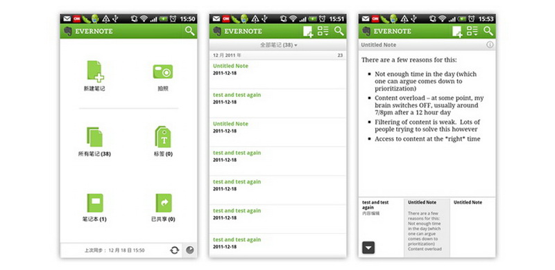 我们来看看,在不同的平台上,Evernote的内容结构有什么不同。