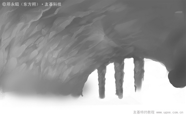 隐藏其他图层,看看石壁的整体效果。基本形状是出来了,但还差点石头纹理的感觉。