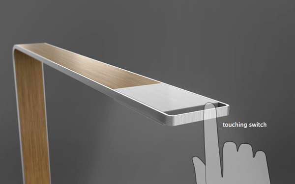 前者采用天然竹子和铝合金两种材质结合构成直角的外形,后者的合金灯臂拥有优雅的曲线。在部件的结合上采用无缝技术,尽量保持灯具表面的干净简约,并设有触觉感应装置来控制光线。