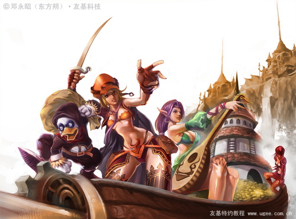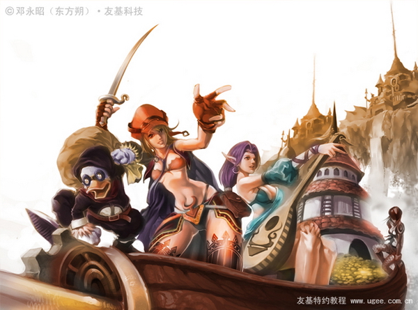 为船舱上的一大堆金币加上闪闪发光的效果,使金币更显夺目。