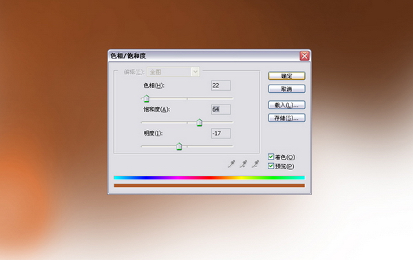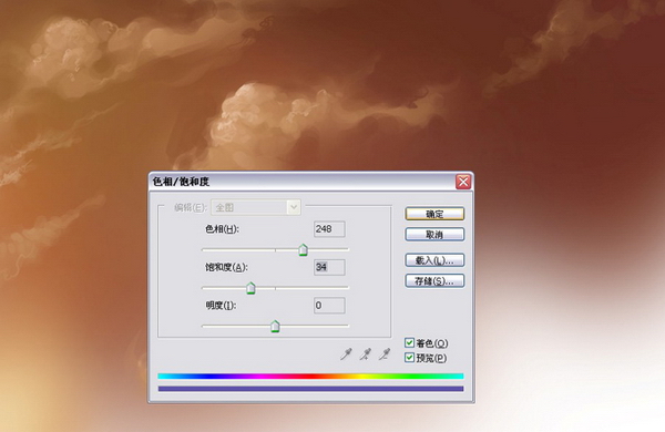 11.选择【图像】-【调整】-【色相/饱和度】, 对之前灰色的底层进行着色处理,参数设置如下: