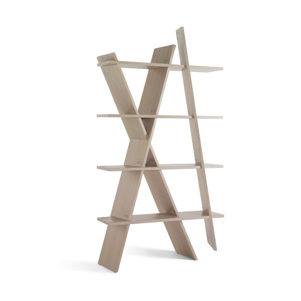 这个名叫:XI bookshelf 的书架是由设计师:Gonçalo Campos 设计制作的,整体上采用了一些非常简单的木板进行组装,不需要任何螺丝和夹具。