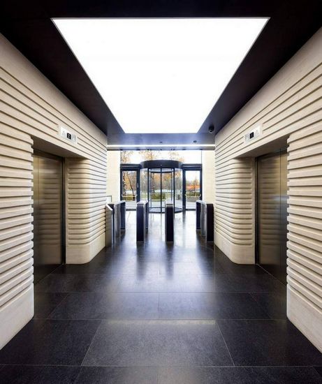 办公大楼位于Leninsky prospekt与Udaltsova街的角落,大楼优雅的外观及莫斯科独特的概念使其脱颖而出。这是莫斯科首个符合欧洲能源高效规划标准的建筑。建筑立面运用了大量的石头板面,强调墙体的厚度,同时,石头会为建筑表皮增添节奏感,同时时间久了也不会有颓废的感觉,反而更增古典感。