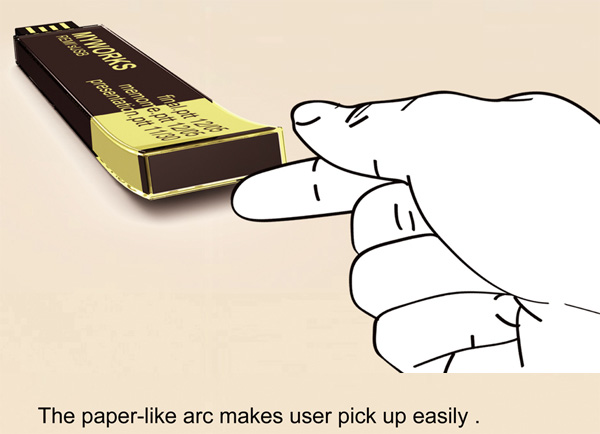由Jui-Min Huang设计的电子墨水屏U盘(MEMOME),外壳上好像是写有信息的Memo便利贴,实际上这是一层电子墨水屏,能够显示U盘里面文件的名称、类型以及存储时间。U盘末端微微上翘,手拿起来更为容易。