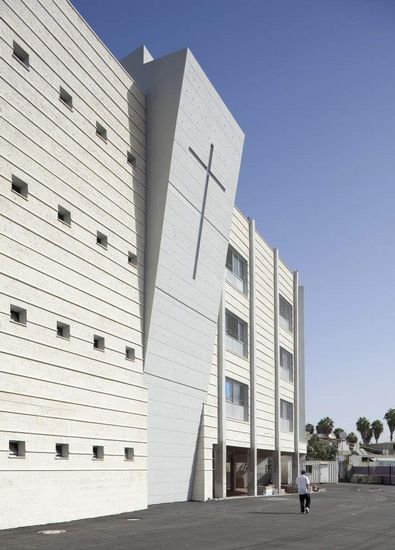 该小场地与历史结构相连接创造了一个密集、连续的一分为二的院落。新建筑邻近现有学校的体育院落,创建了一个户外活动中心。这种空间连续通过令人振奋的建筑物进一步增强,在通风和林阴处提供了自由活动和学生与老师之间的互动。