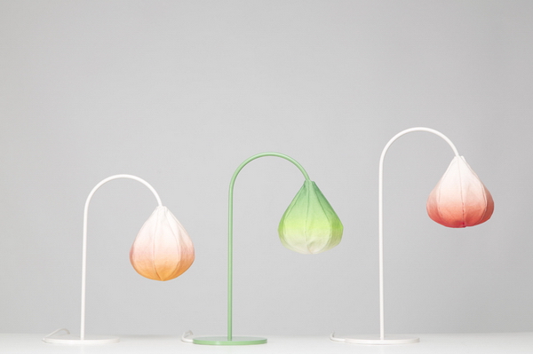 挪威女设计师 Kristine Five Melvær设计的Bloom Lamps灯具,灵感来源于大自然中的花苞抑或水滴,渐变淡雅的色调以及布面纤维与钢的结合,简约而舒心。