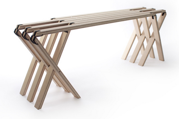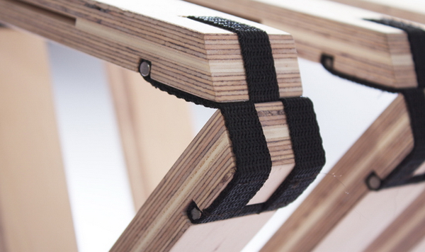 来自德国穆特休斯美术设计学院的三位学生,给我们带来了这款折叠长椅。经过巧妙的设计,借由缝隙以及木材接合处的金属部件和织物关节,长椅的腿和椅面可以严丝合缝的并拢在一起,或是结结实实地支撑起来。