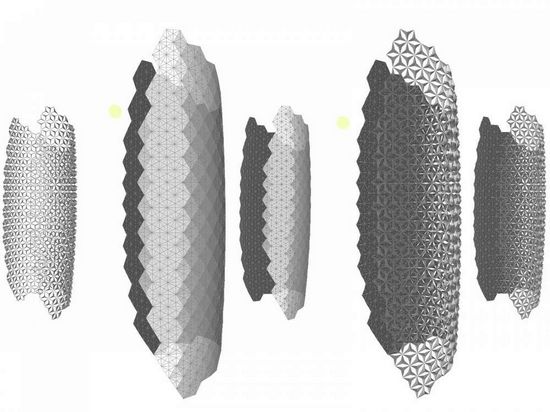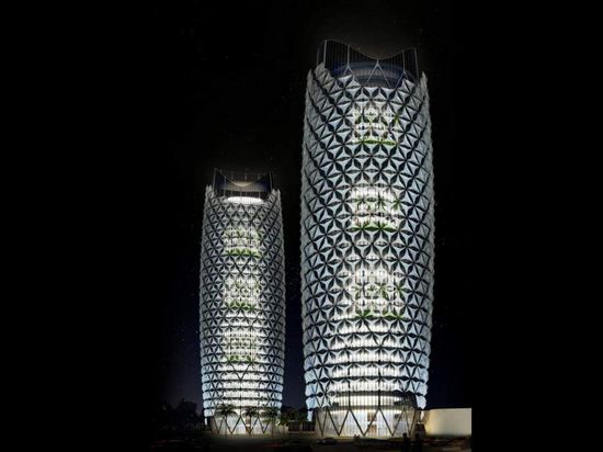 鉴于阿布扎比天气:一个星期内将有的强烈阳光,基本保持华氏100度以上的温度,没有下雨的可能。在这种极端天气条件下,建筑师将环境设计列为首要任务。项目145米的塔于2012年6月完成。屏风作为一个幕墙,在两米外的建筑物外墙上形成一个独立的框架。每个三角形都涂有玻璃纤维和编程以回应于太阳移动,从而减少太阳能和眩光。到了晚上,所有的屏幕都关闭。据估计,这样的屏风将减少50%以上的太阳光热,并减少建筑物的能源引流空调需要。加上在阴凉处可以过滤光线,使得建筑师在成品玻璃上更有选择性。 屏风允许使用更多的自然着色玻璃,并不需要太多的人工光,从而可以有更多的光线和更好的视野。