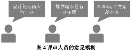 如图3[2]关于这一点不少设计师都深有感触,很多参与设计评审的人员尤其是产品经理,经常会提出一些诸如“这个界面使用黄色感觉不太舒服”、“这个标题的字应该调的更紧凑一些”,“我觉得这个设计不够大气”等等的意见。上述意见更多地反映了个人喜好,而无法达到设计评审帮助设计师寻找更优设计方案,指引设计方向的作用。