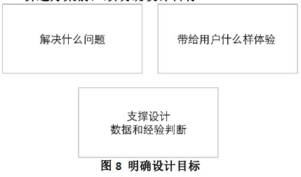 如图8所示,讲述方案前要把设计所需解决的问题,带给用户什么样的体验(这需要和产品经理和整个团队达成一致)和支撑设计的数据与经验判断,先明确出来。在很多设计评审中,评审者为某个细节讨论不休,各说各话,不能在一个层面上讨论问题。如果明确了设计目标,设计师陷入讨论混乱的时候,可以回顾设计目标,把大家拉回正确的方向。此外,支撑设计的数据和经验判断,在讲述方案中也起着独特作用,首先会使设计师的讲述有理有据,其次让讨论更加有效。同时评审人员还可以更加明确地讨论是数据和经验判断有问题,还是设计表现上有问题。