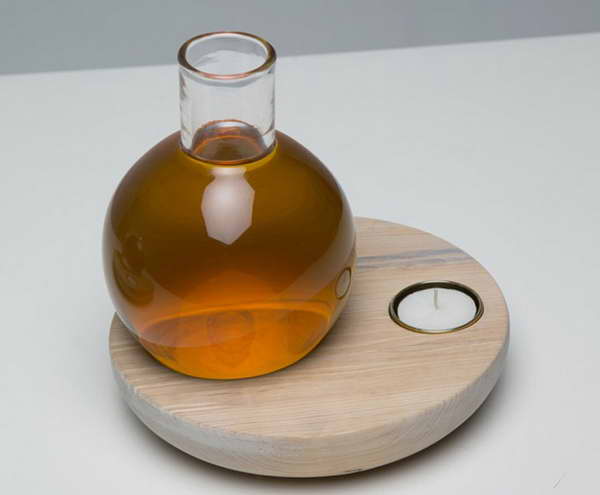 2012年东京设计展上,来自挪威的kristine five melvær 带给我们的液体灯。在一个木质托盘上放置玻璃容器与蜡烛,蜡烛经过玻璃的散射,将整个冬日餐桌映照得暖洋洋!