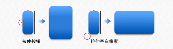 1. 在高度不拉伸的情况下,在空白区域点一像素的点。 这是与开发同学之间约定俗成的习惯,凭着默契就知道此按钮高度不进行拉伸,而且就是被拉伸了,拉伸的是空白区域,视觉上也不会造成影响。 对比如图所示: