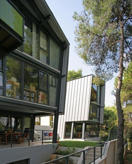 该项目是由 React Architects 设计,位于希腊雅典郊区。金属框架配合混凝土墙,房子本身被营造出阁楼的感觉。