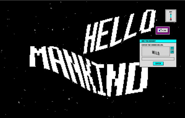 Sapien发行了首张专辑《Hello, Mankind》,并为之做了官方网站,上面大量运用了验证码,Gif图和让人眼花缭乱的合成效果,正如专辑名所表达的,亲你是人类吗?