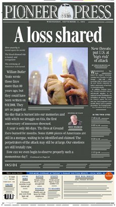每当遇有重大事件,报纸头版都会配合事件的发生而设计,比如汶川地震全国报纸的一片“黑白”。911事件自然也不例外。下面就是911周年的美国各报头版设计,让我们看看美国的报纸头版设计是怎样的。