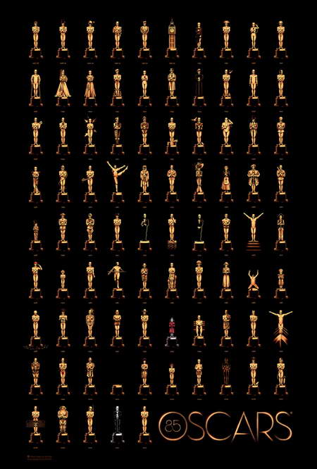 第85届奥斯卡颁奖典礼日渐逼近,为了吸引观众创下更高的收视率,大会特别与英国设计师奥利摩斯合作,推出了一组创意十足的奥斯卡海报,而这组新海报以历届最佳影片中一些为人熟悉的主角造型来设计成不同的“奥斯卡小金人”。