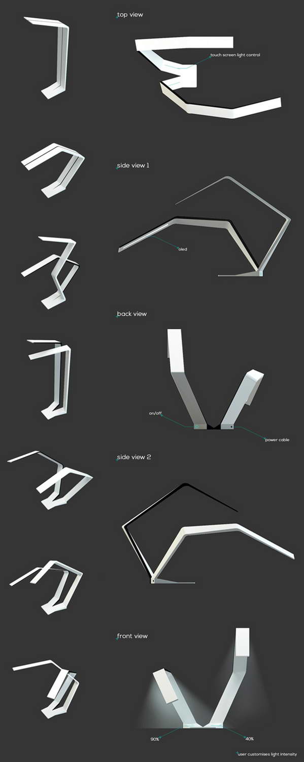 有读写需求的朋友一定会经常与台灯打交道,台灯除了光照和美观之外其实还有一个方面是非常值得大家关注的那就是灯光产生的阴影区域。特别是有时候需要书写的时候,更是被讨厌的阴影所印象。这篇文章之中的开叉台灯就比较好的解决了这个问题,多角度的设计可以分散阴影,有点像手术台的无影灯。并且造型还很酷噢。两个分枝是可以独立操控的,还是比较方便的。