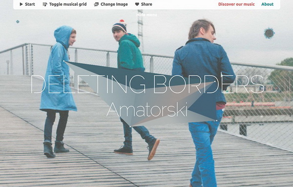 删除边界是一款HTML5的音乐编曲页面,用户可以创建自己的音轨,使用自己的图片,并且同全世界分享自己的创作。