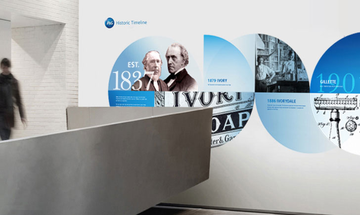 P&G成立于1837年,是最大的消费品公司之一,遍布世界75个国家,2012年业绩超过83亿美元的销售额。两主要领域是美容及家居护理,包括一些最知名的消费品牌,如帮宝适、吉列、汰渍、碧浪、潘婷、海飞丝、玉兰油、欧乐-B、佳洁士等。今年年初,宝洁公司推出了由朗涛设计的最新标识。
