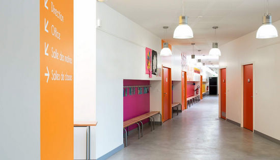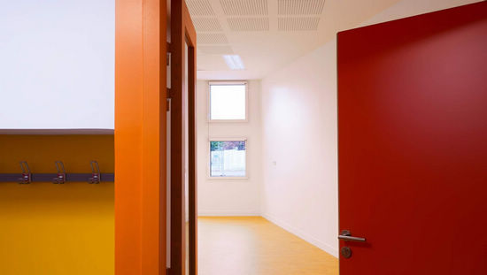 该项目满足三个要求,市政府调整学校规模,目前当地教育需求,重新定义现有的家庭中心的关系的性质和振兴与当代建筑面积。大楼建在一个单一的水平,组织围绕中央走廊凹进的,以容纳长椅和创造各种非正式的场所,儿童的壁龛。不同大小的窗口框架的多个视图的法院,天空或树梢。